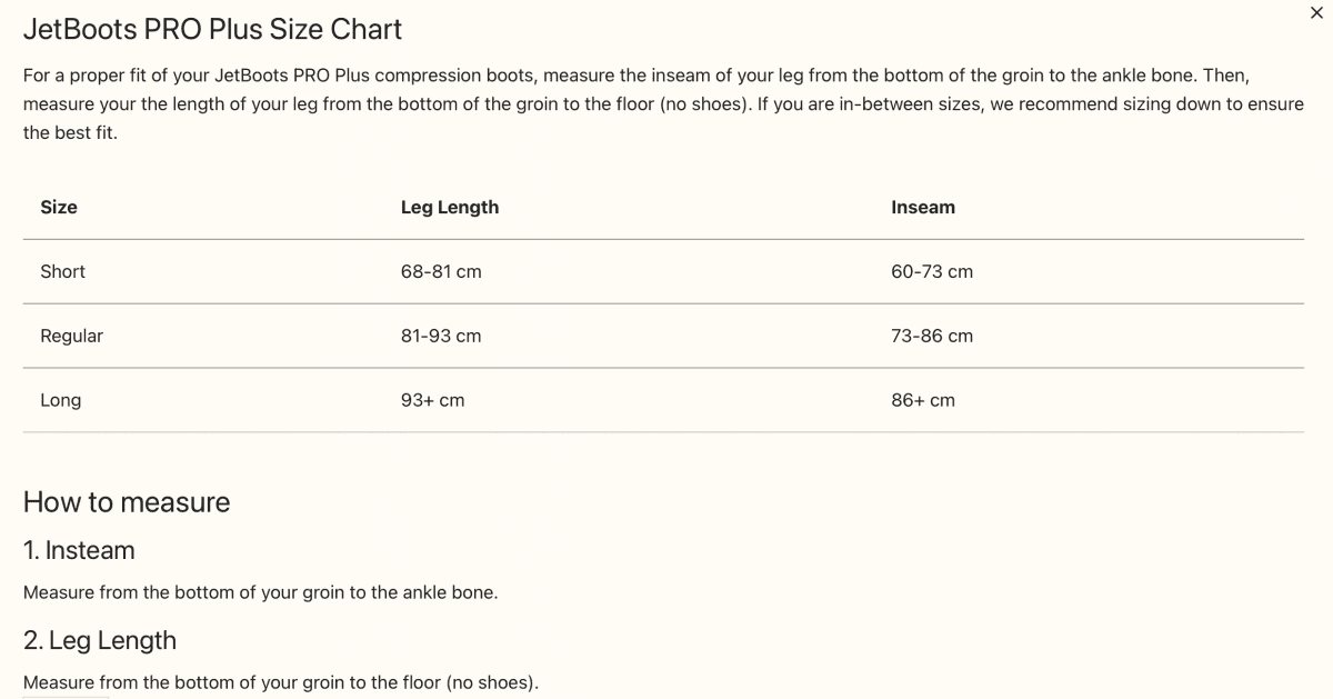 JetBoots PRO Plus anpassar trycket efter din benstorlek och applicerar mest tryck vid fötterna, för att sedan successivt arbeta sig upp genom fyra överlappande kammare. Det förbättrar blodcirkulationen och tillför syre och näring till musklerna.